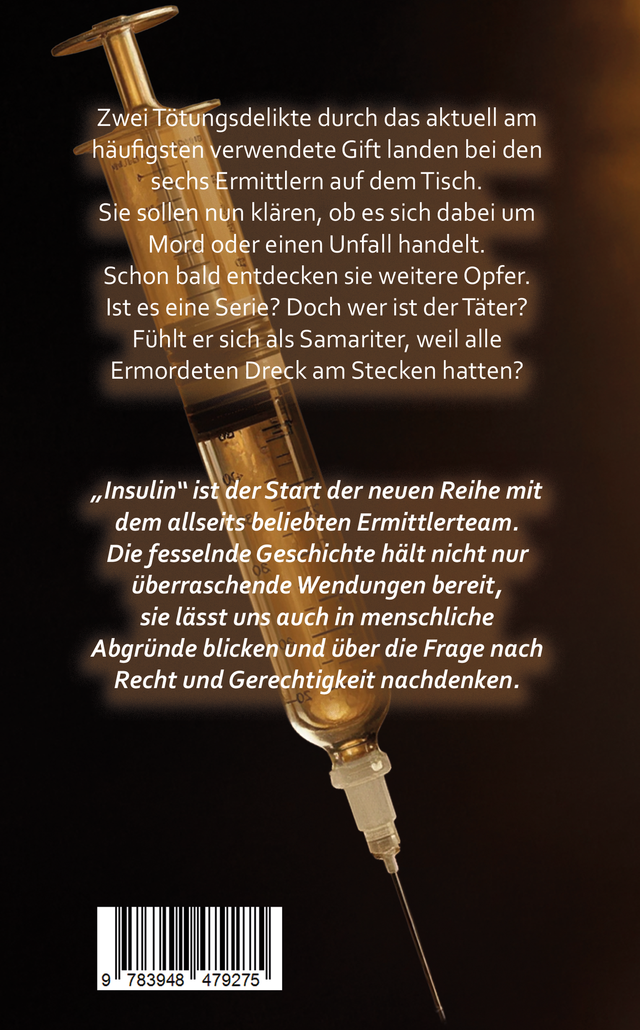 „Insulin“ ist der Start der neuen Reihe mit dem allseits beliebten Ermittlerteam. Die fesselnde Geschichte hält nicht nur überraschende Wendungen bereit, sie lässt uns auch in menschliche Abgründe blicken und über die Frage nach Recht und Gerechtigkeit nachdenken.