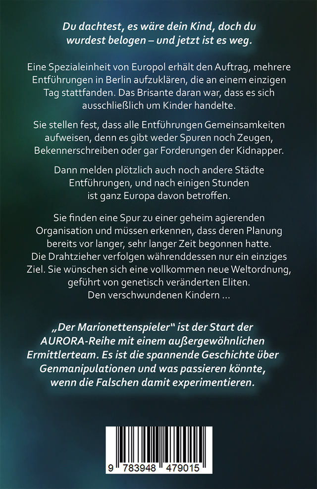 „Der Marionettenspieler“ ist der Start der AURORA-Reihe mit einem außergewöhnlichen Ermittlerteam. Es ist die spannende Geschichte über Genmanipulationen und was passieren könnte, wenn die Falschen damit experimentieren.